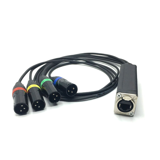 - Run up to 4 channels over Cat5 - 4Β Male XLR Output - Locking RJ45 Terminal - Locking XLRM Terminals - 3ft XLR Cables