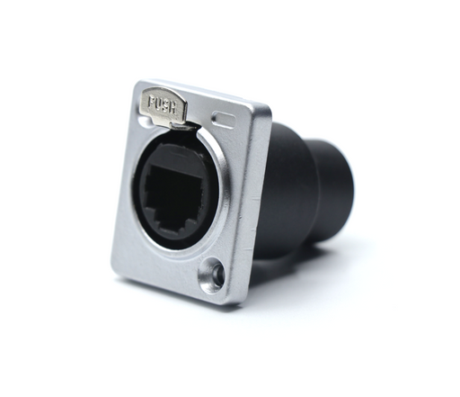 - Plastic with Metal Housing Panel MountΒ - RJ45 Plugs directly into front and back - Size D Panel Mount